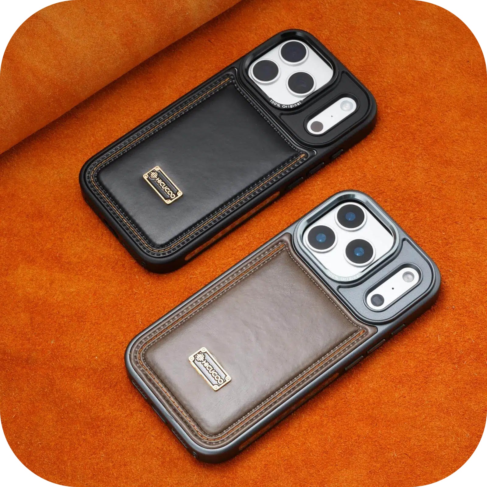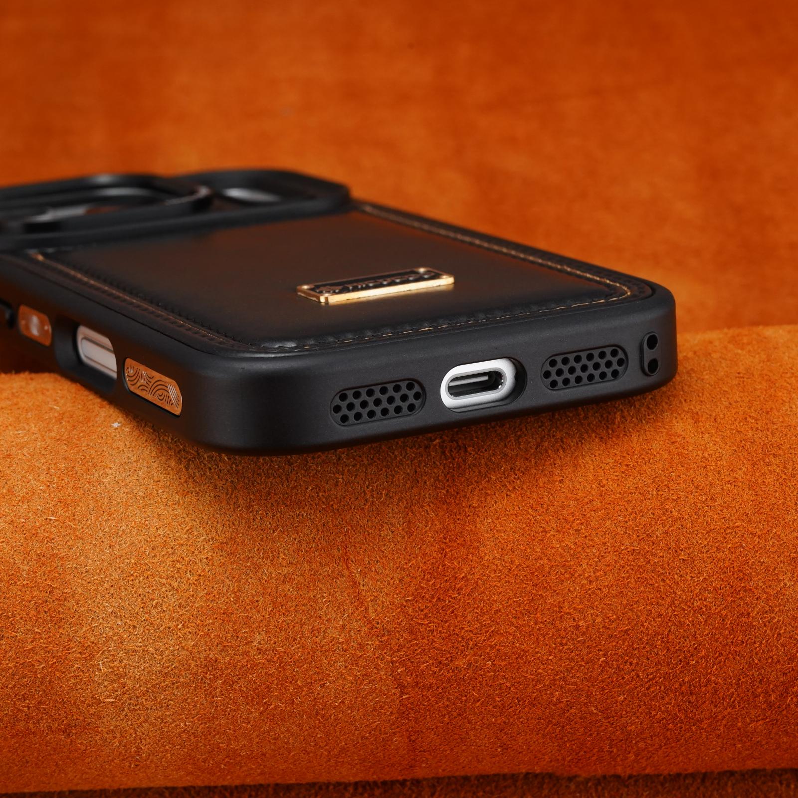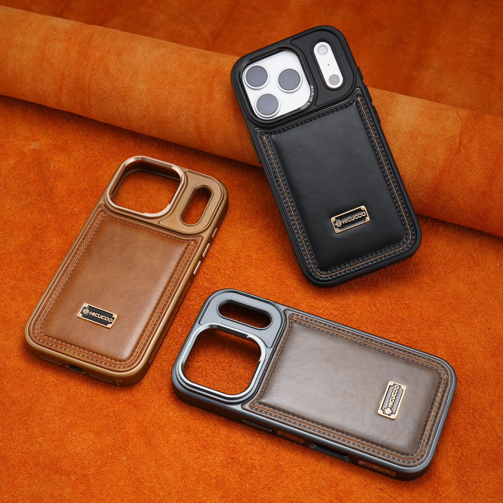 Schutzhülle aus Leder mit erhöhter Linse für iPhone